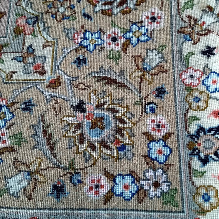 جفت شش متری دستبافت کاشان جنس پشم و گل ابریشم اندازه ۲۱۰×۳۱۰ سانتیمتر رنگ کاملا ثابت و تضمینی بافت بسیار مرغوب و با تراکم بالا امکان بازگشت رایگان کالا تا ۷۲ساعت بعد از خرید امکان رایگان پرو در منزل برای شهرهای کاشان،قم،تهران،کرج و اصفهان خرید مستقیم و بی واسطه از تولیدی